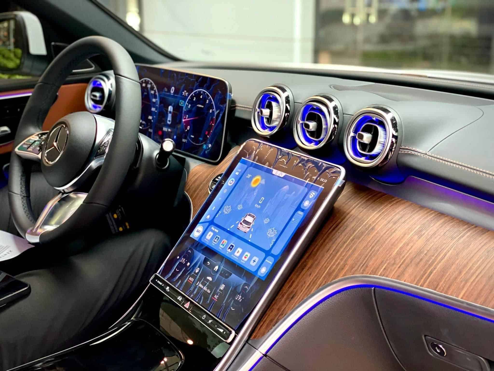 Công nghệ trang bị cho phiên bản này được đánh giá là công nghệ đến từ tương lai vơi bảng đồng hồ kỹ thuật số kiểu máy tính bảng, màn hình trung tâm tách rời táp-lô và uốn cong mềm mại xuống bệ trung tâm. Cụm màn hình giải trí cảm ứng với hệ điều hành MBUX có kích thước 11,9inch có khả năng kết nối với Bluetooth, Apple Carplay/Android Auto không dây. Hệ thống giải trí điều khiển các tính năng MBUX được kích hoạt thông qua câu lệnh “Hey Mercedes”. Vô lăng 3 chấu thể thao được bọc da êm ái bên ngoài có chức năng nhớ 3 vị trí.