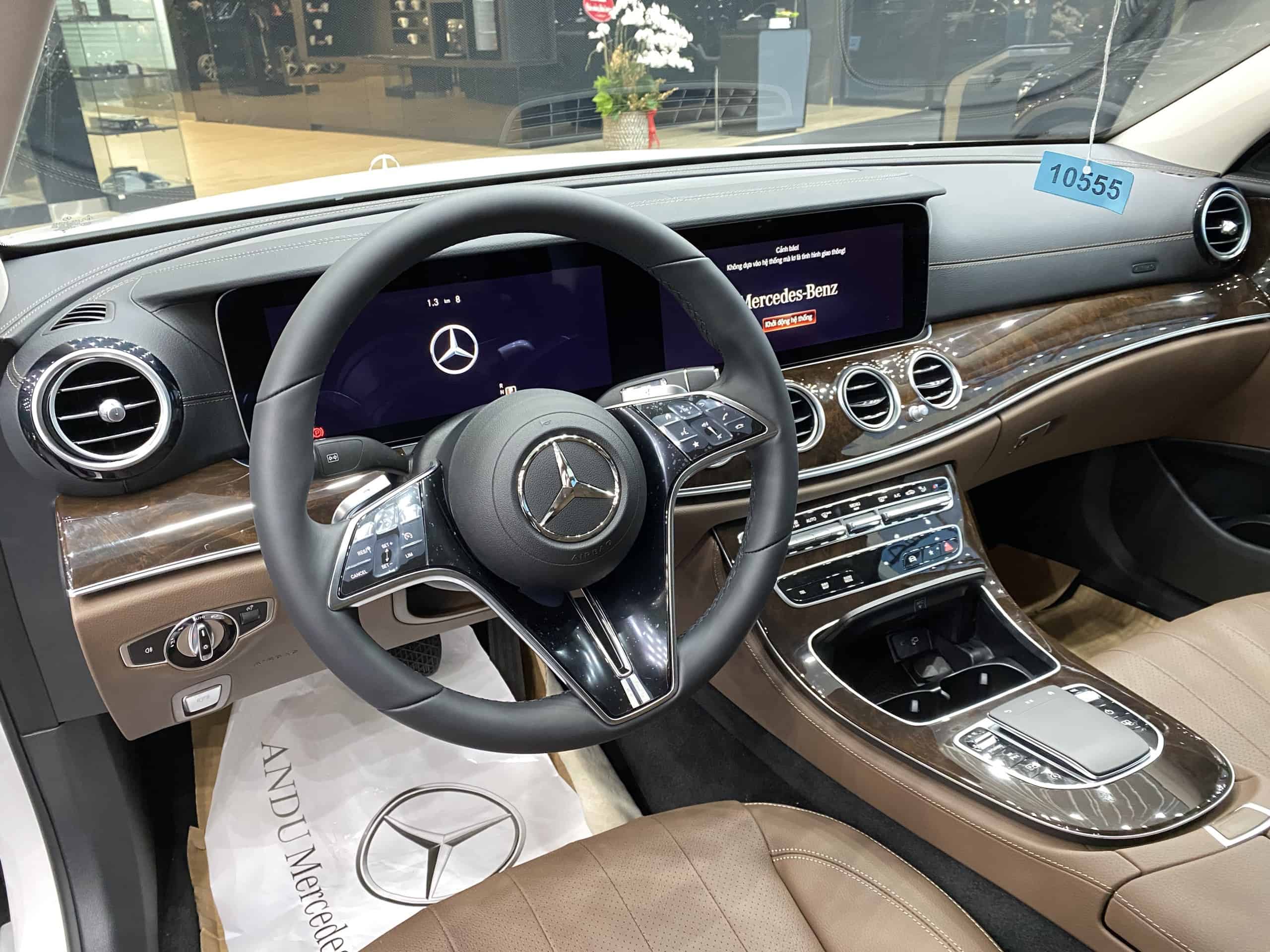 Điểm nhấn đầu tiên về mặt tiện nghi là vô lăng 3 chấu bộc da Nappa thiết kế mới, điệu đà tương tự đàn anh S-Class tích hợp nút điều khiển cảm ứng trên tay lái (Touch Control Buttons). E 200 Exclusive được trang bị giao diện thông tin giải trí MBUX với 4 hình thức điều khiển khác nhau, bao gồm màn hình cảm ứng 12.3-inch, điều khiển bằng giọng nói, nút điều khiển cảm ứng trên tay lái hoặc bàn điều khiển touchpad.