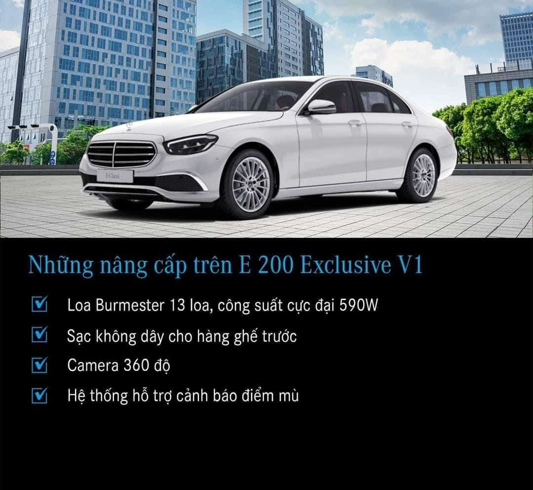 Mercedes-Benz E 200 Exclusive phiên bản nâng cấp đã chính thức có mặt tại thị trường xe sang Việt Nam với nhiều chi tiết mới về ngoại thất như đèn pha, đèn hậu và mặt ca lăng. Đồng thời Mercedes-Benz cũng tập trung vào trang bị công nghệ và an toàn tiên phong nhằm tạo ra chuẩn mực mới trong phân khúc sedan hạng sang cỡ trung hiện nay.