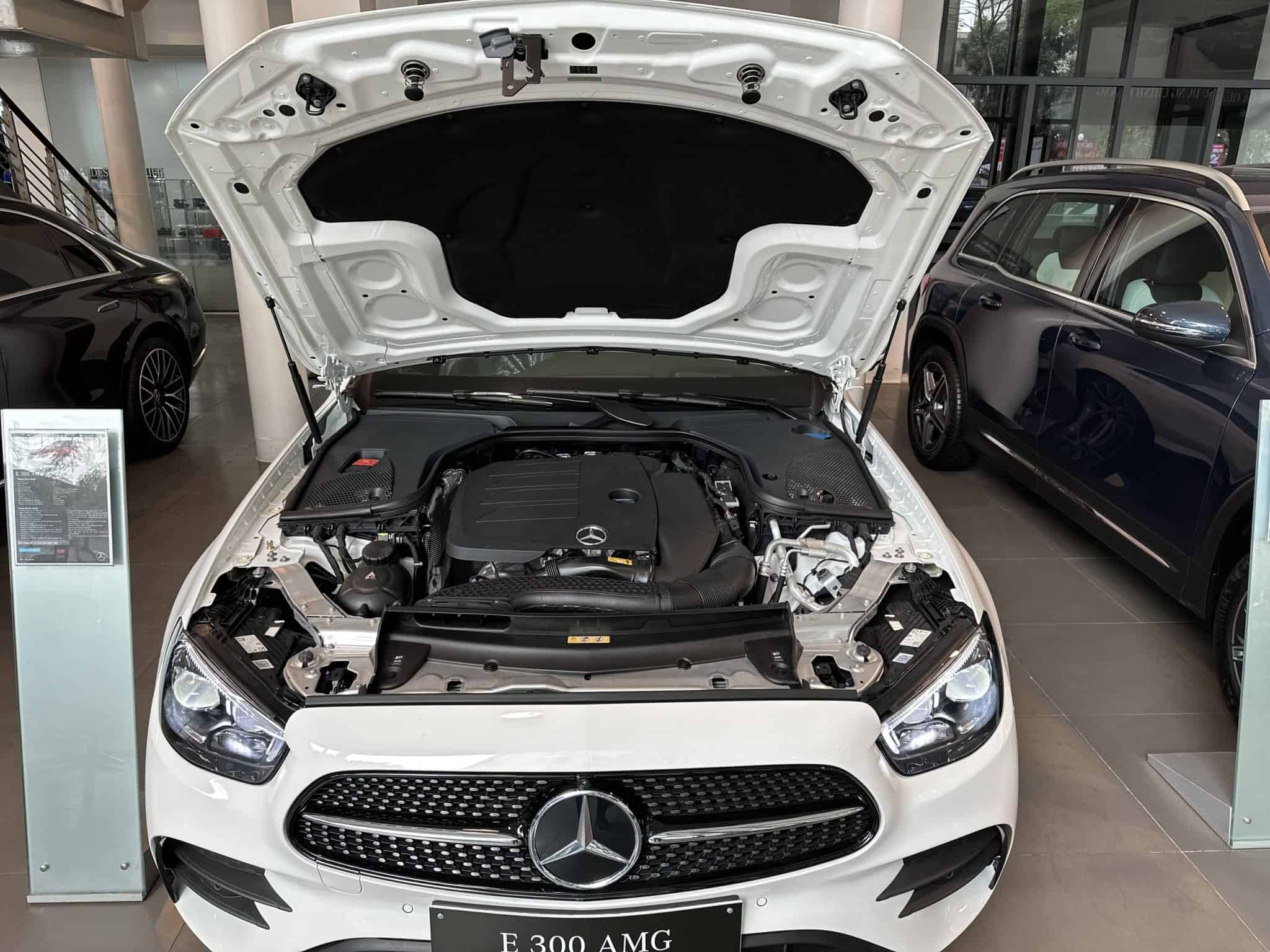 Phiên bản E 300 AMG nâng cấp vẫn được sử dụng cỗ máy với mã M264. Đây là động cơ I4 dung tích 2.0 lit cho công suất cực đại đạt 258 mã lực tại vòng tua máy 6.100 vòng/phút, mô men xoắn cực đại đạt 370 Nm tại 1.650 – 4.000 vòng/phút, qua đó giúp xe tăng tốc 0 -100 km/h chỉ trong 6,2 giây và tốc độ tối đa lên đến 250 km/h. Đi kèm là hộp số 9G-TRONIC kết hợp lẫy chuyển số thể thao giúp tăng thêm phấn khích trong khi lái xe.