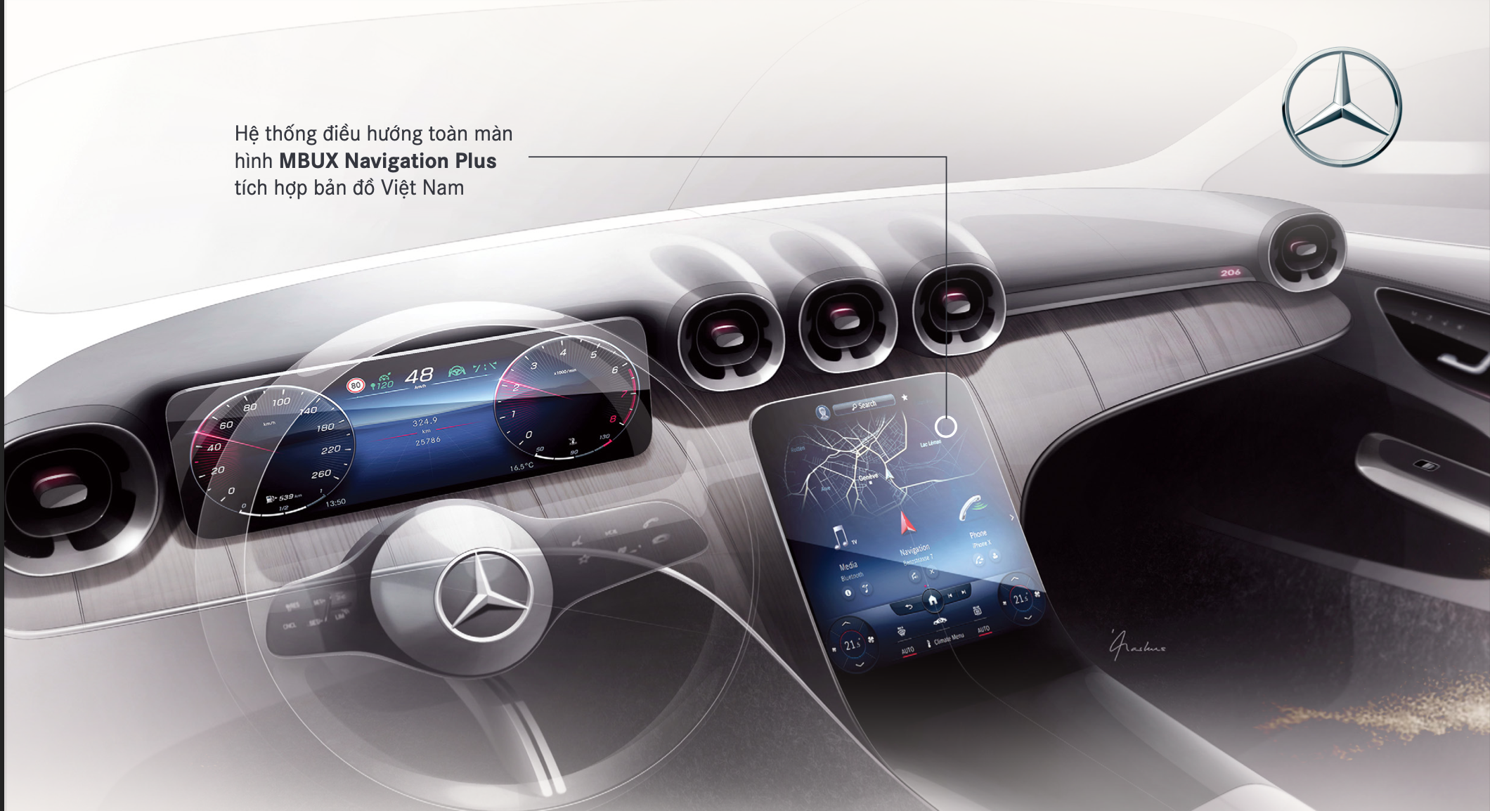 Người dùng sẽ được trải nghiệm công nghệ hiên đại bậc nhất thông qua hệ thống thông tin giải trí MBUX thế hệ thứ 2, cũng là thế hệ mới nhất với màn hình cảm ứng trung tâm 11,9 inch hỗ trợ kết nối Apple Carplay và Android Auto không dây. Ngoài ra bảng đồng hồ sau vô lăng tích hợp màn hình màu 12,3 inch. Chỉ cần chạm nhẹ người dùng có thể điều chỉnh cách hiển thị, hệ thống đèn trang trí nội thất hoặc tiện nghi giải trí theo cách mình mong muốn.