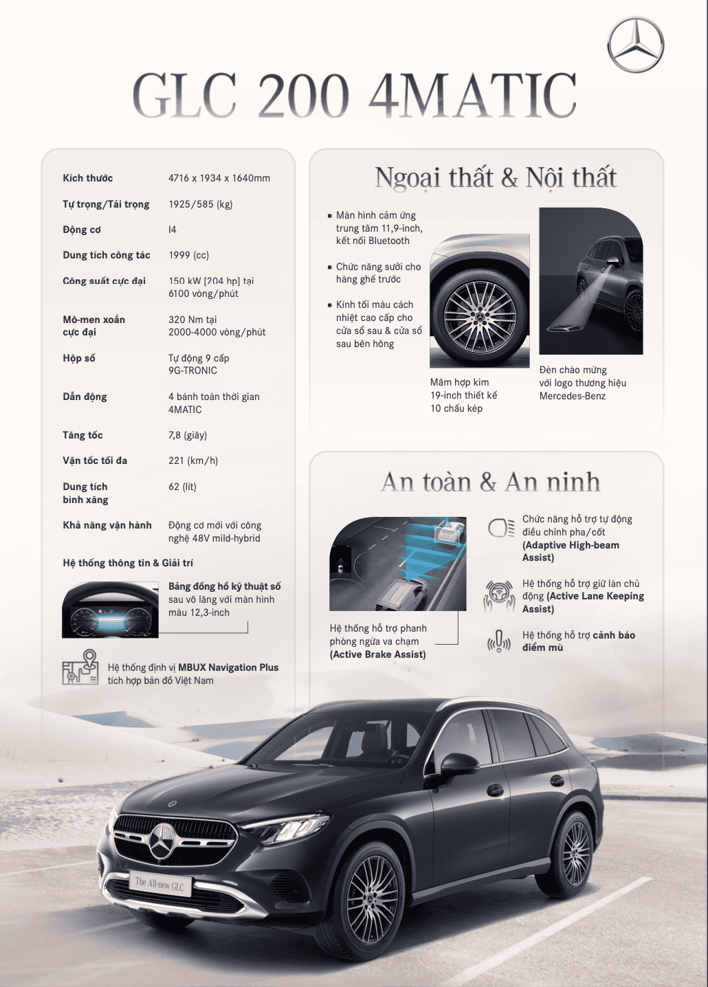Thông tin chi tiết xe GLC 200 4Matic 2023