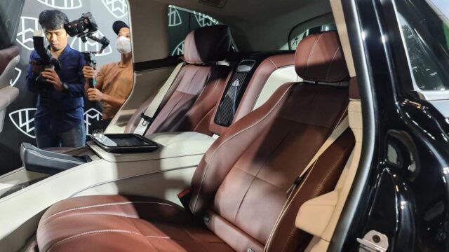 Đặc biệt, hàng ghế ông chủ phía sau là không gian cao cấp, tiện nghi với khả năng duỗi chân rộng đến 1.103 mm, lưng ghế ngả tới 43,5 độ, mang lại cảm giác thoải mái. Hàng ghế này còn có thêm hai màn hình giải trí riêng biệt gắn trên lưng ghế trước, đi cùng hệ thống điều hòa độc lập, tủ lạnh mini và sạc không dây.
