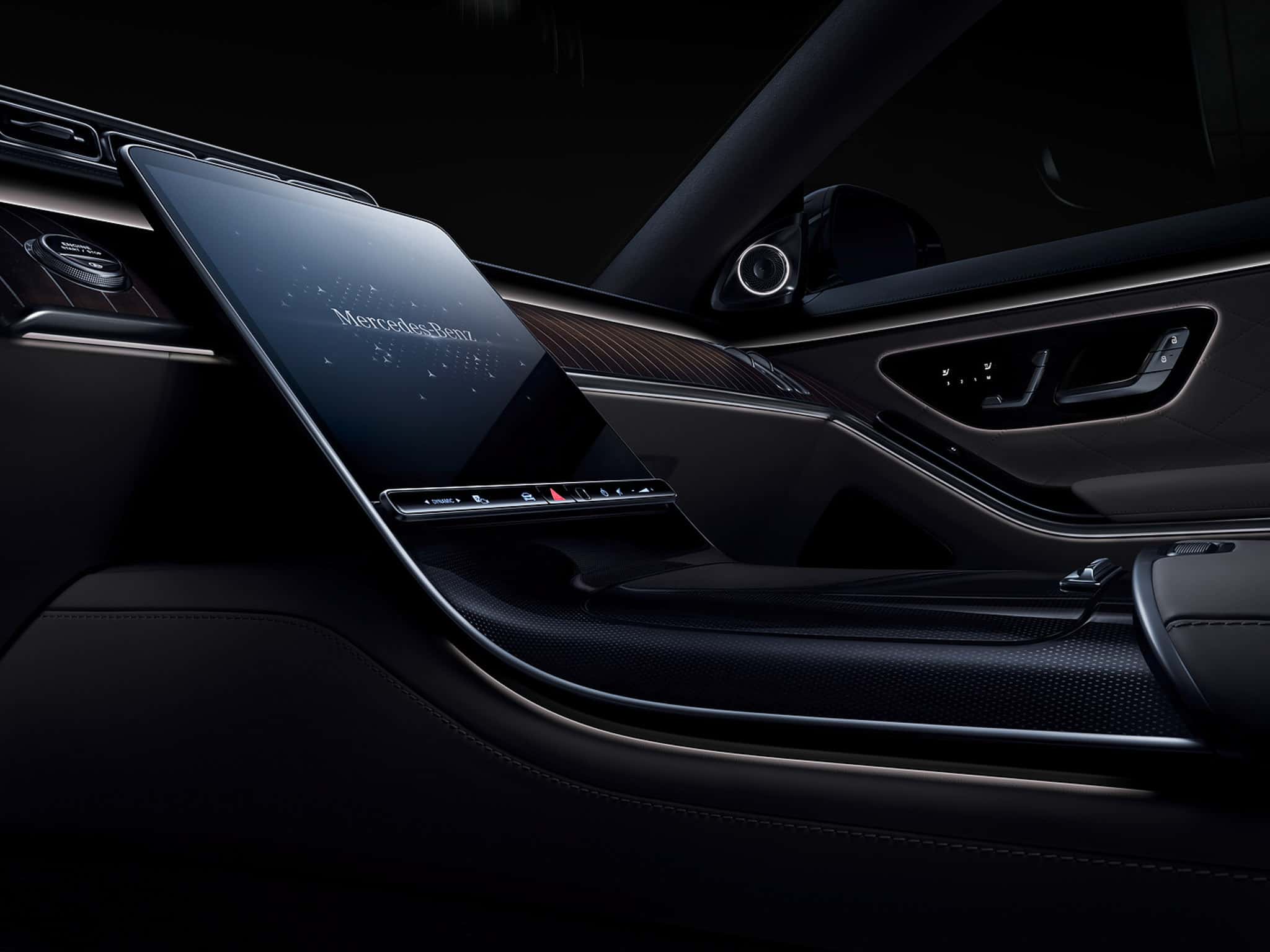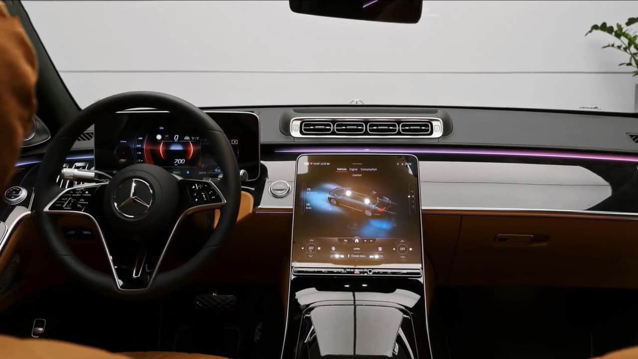 Không chỉ dừng lại ở đó, thiết kế nội thất của Mercedes S450 còn nổi bật từ 2 màu hình màu TFT 12.8 inch kết hợp cùng màn hình truyền thông đa phương tiện. Đồng thời tích hợp đồng hồ với biểu tượng thương hiệu Mercedes hình ngôi sao ở vị trí chính giữa, logo này còn được thể hiện tại ốp bể cửa như một lời khẳng định chất lượng thương hiệu sản xuất ô tô số 1 thế giới – thiết kế thông minh chỉ có ở Mercedes S450