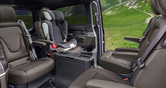 Thế hệ V-Class nâng cấp V 250 Luxury có 7 chỗ ngồi cỡ lớn. Hàng ghế thứ hai có thiết kế 02 ghế độc lập, xoay 180 độ, có thể tạo thành một phòng họp di động hay không gian nói chuyện, tương tác giữa các thành viên trong gia đình. Hàng ghế thứ ba có 03 ghế ngồi, trong đó ghế ngoài cùng có thể xếp gọn lại để giúp hành khách có thể di chuyển ra vào dễ dàng hơn.
